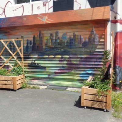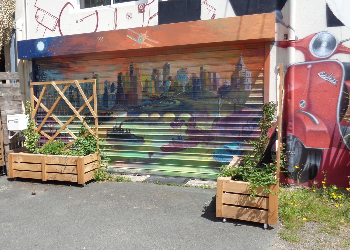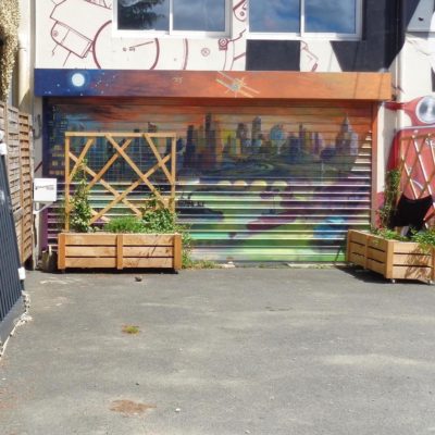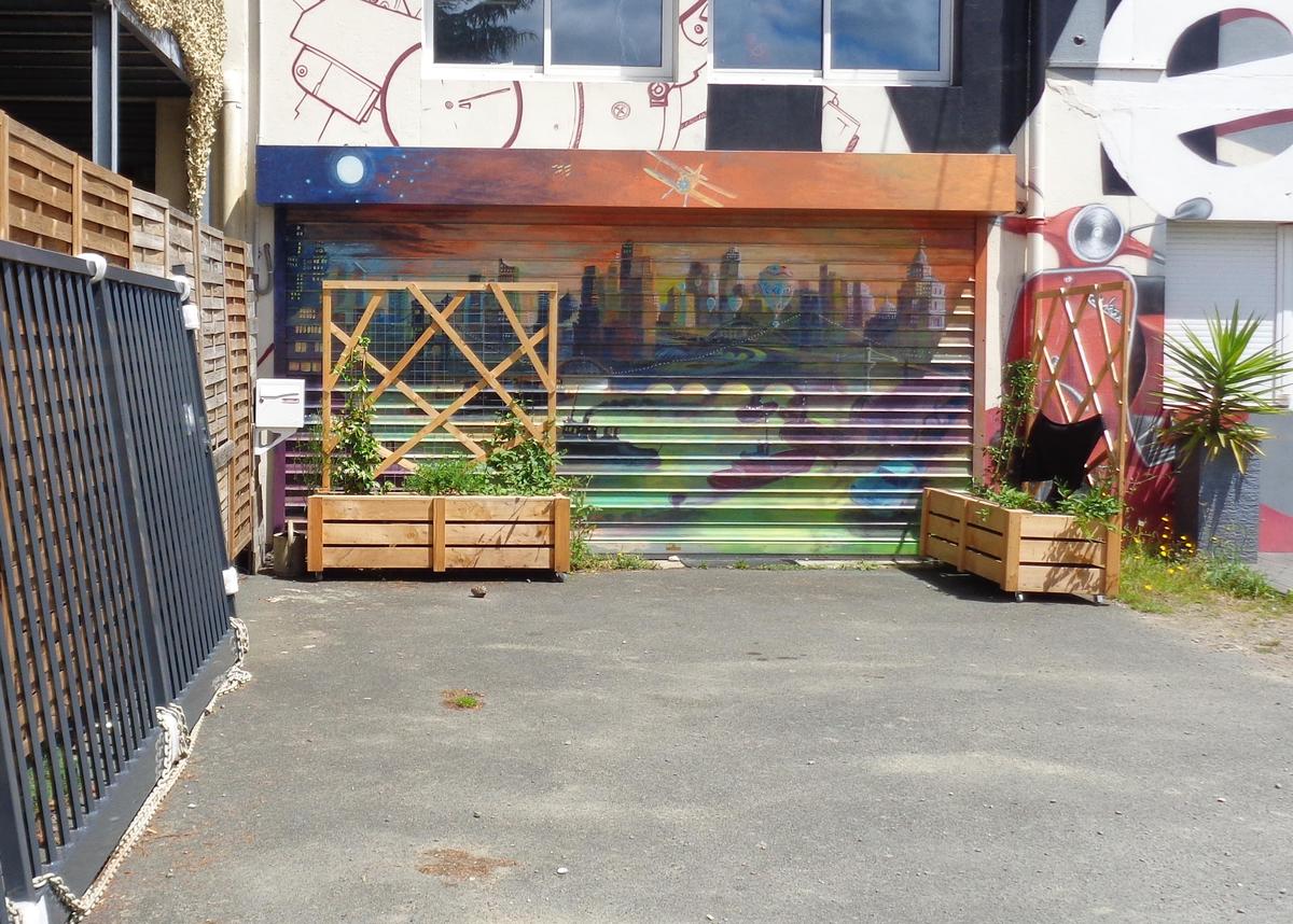 Palissades mobiles, panneaux décoratifs végétalisés, bancs: ces bacs à roulettes offrent à cette terrasse improvisée de nouveaux usages.