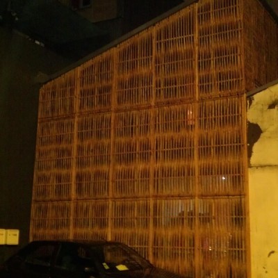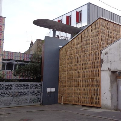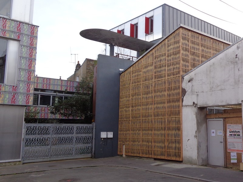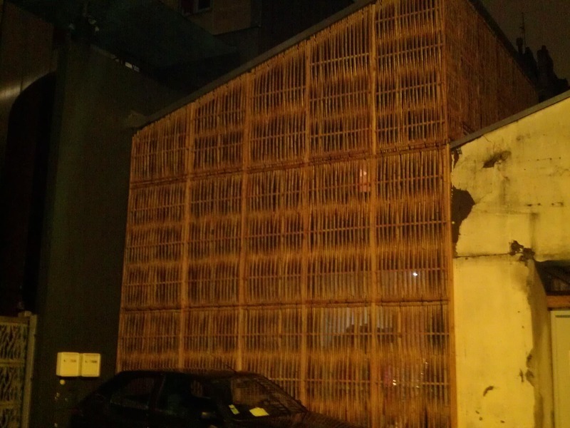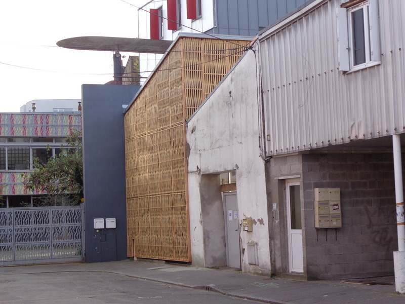 L'idée de faire de la "vannerie" autour d'une maison est déjà originale en soi mais ce qui l'est encore plus c'est d'y englober aussi les ouvertures de la façade côté rue afin de les faire disparaitre à l'œil. Ce qui n'empêche pas la lumière d'entrer à l'intérieur grâce à un tressage large et aéré.