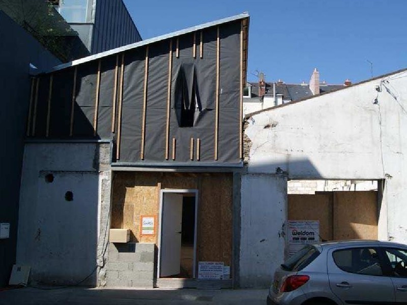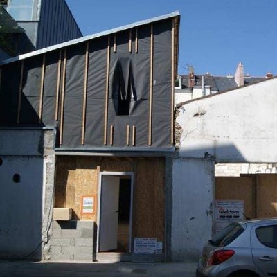 Dans un vieux quartier de Nantes, un ancien atelier se transforme en logement. La réhabilitation comprend une extension en ossature bois à l'étage et de grandes baies vitrées mais une bonne partie de la construction maçonnée est également conservée. Comment retrouver une unité dans ce mélange d'époques, de styles et de matériaux? En imaginant un bardage original qui englobe l'ensemble.