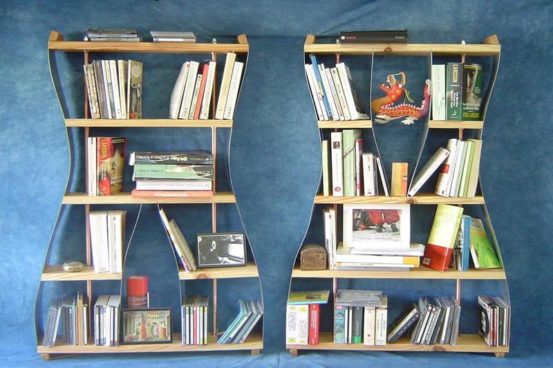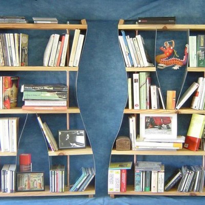 plutôt que de concevoir une seule bibliothèque de grande taille, l'idée ici est de travailler sur une paire pour avoir des modules plus petits, plus légers qui trouvent ainsi plus facilement leur place au mur ou au sol.