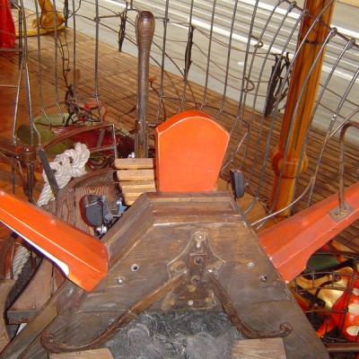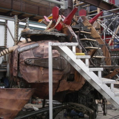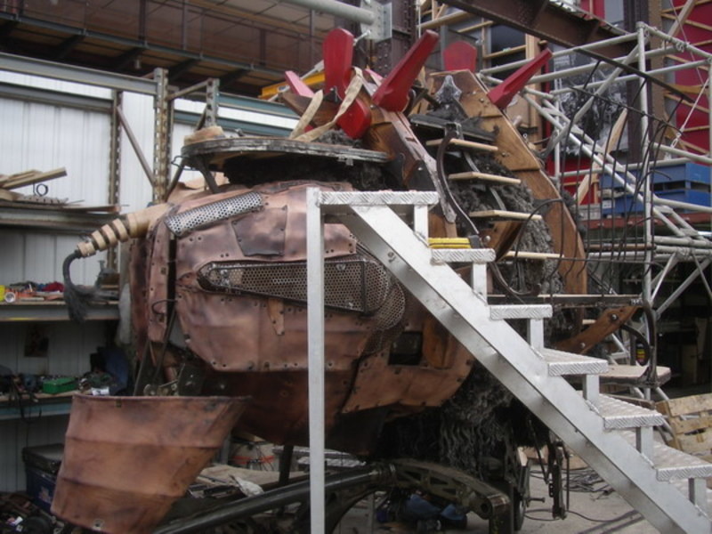La forme est en ronds d'acier soudés sur lesquels sont tendus des filets. Dans chacune des centaines de mailles sont noués des torons d'amarres de bateau usées pour faire un pelage très varié en fonction des zones du corps (usure, longueurs et salissures des poils adaptées). Sur le dos de l'animal est fixé son bât en pièces de chêne inspirées des membrures de navires et son chargement (le public) installé sur des sièges en bois et métal. Plusieurs parties du corps (tête, oreilles, queue) sont mobiles et manipulables grâce à des commandes placées devant les sièges.