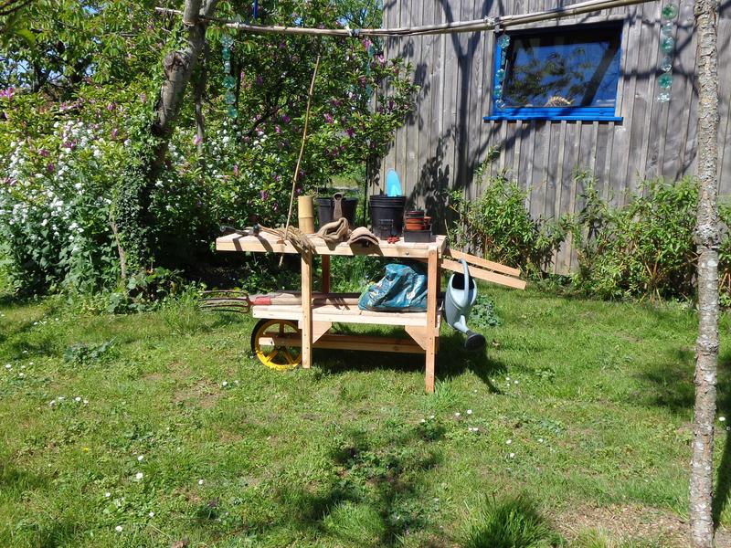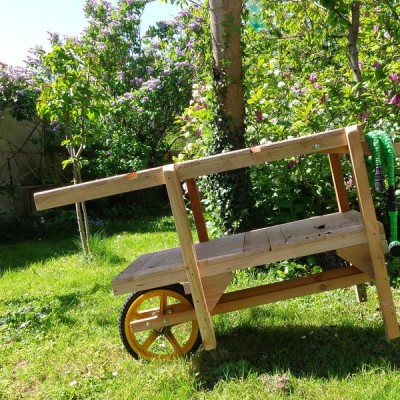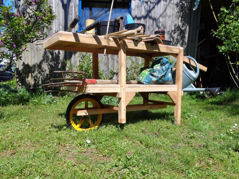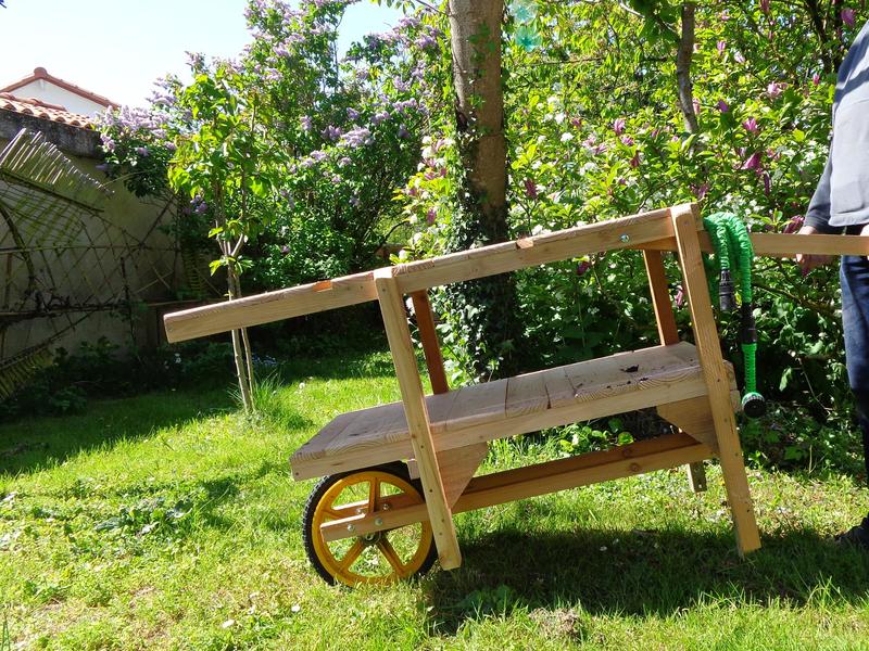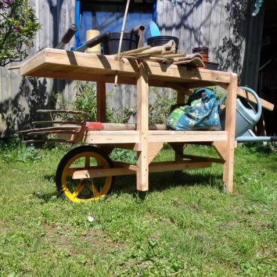 Un établi qui se déplace comme une brouette et qui permet d’emporter ses outils partout dans le jardin