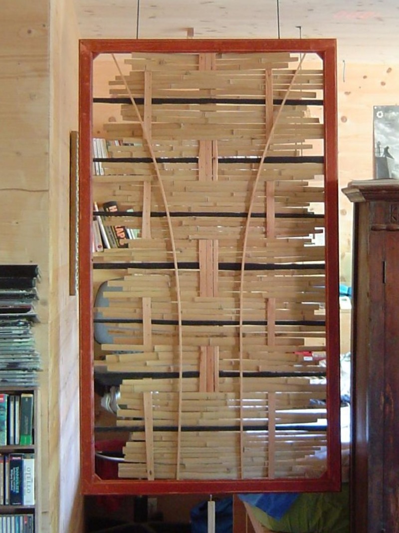 Les panneaux descendent et remontent à l'aide d'une simple baguette en bois.