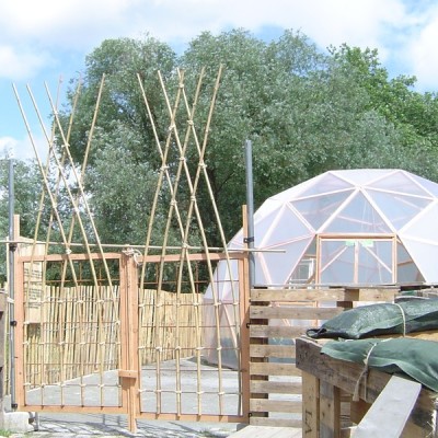 la fourniture de la serre mutualisée, éphémère, assemblée avec la participation des habitants