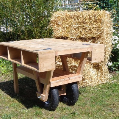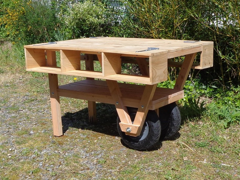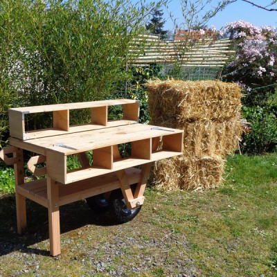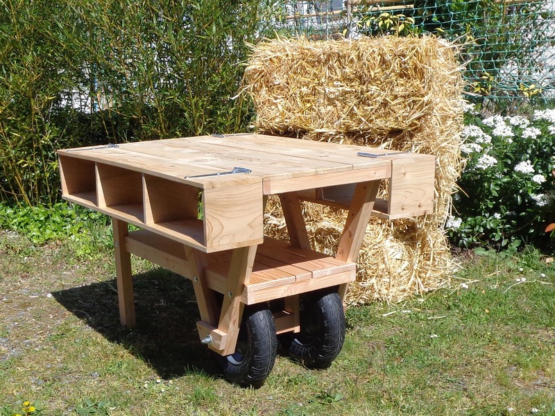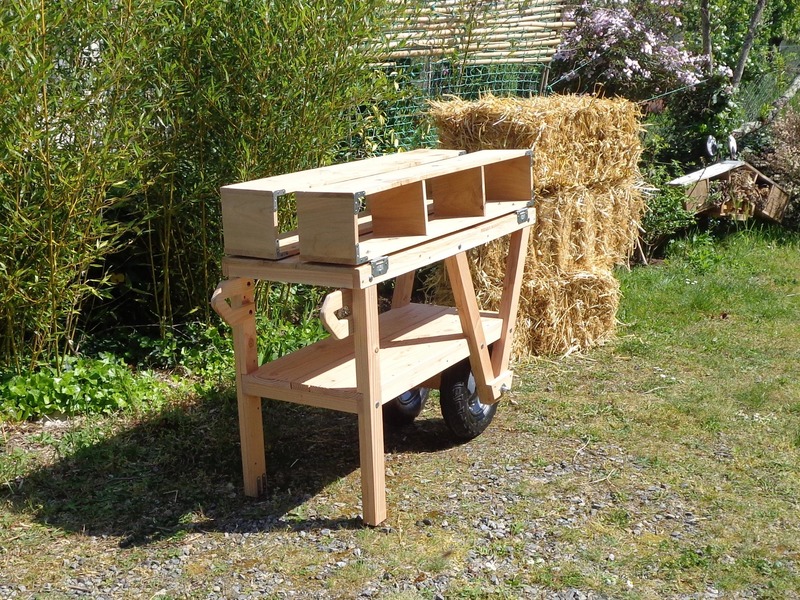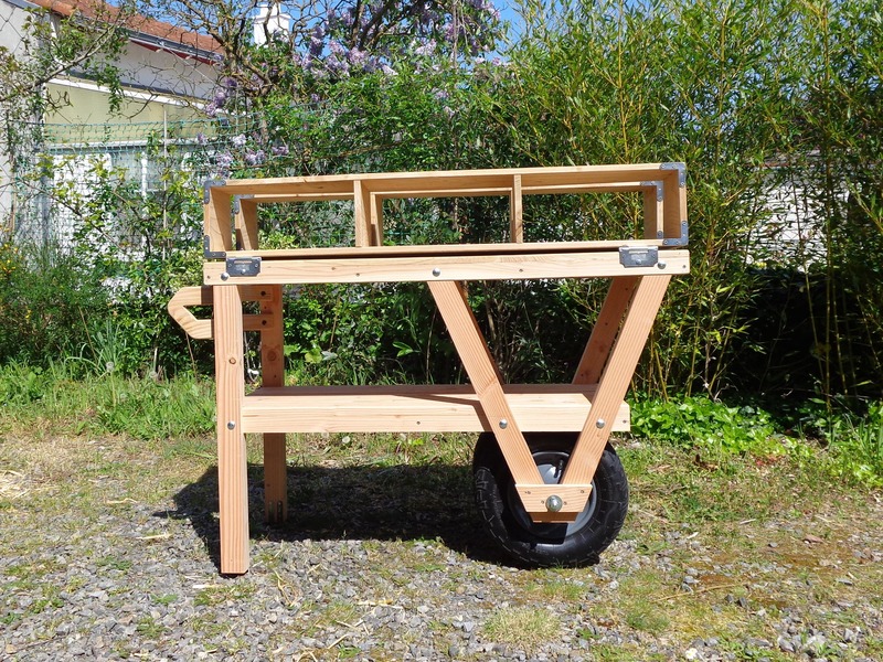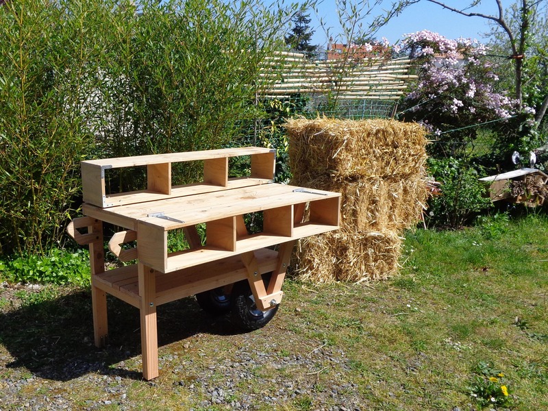 La première version comportait quelques défauts de stabilité et était avant tout typée "outil de jardin". Celle-ci est une commande pour une association d'entrepreneurs créatifs qui partagent une grande terrasse sur leur lieu de travail commun dans le centre de Nantes.