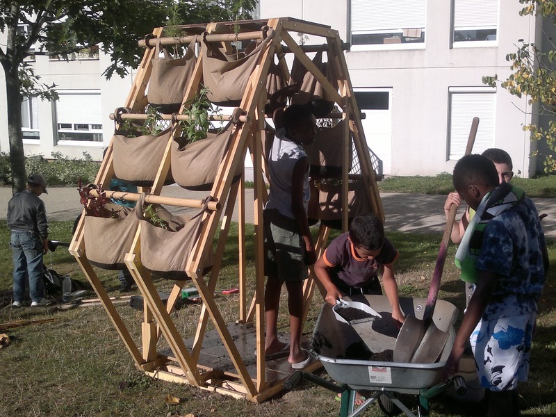 En collaboration avec l'association ECOS nous avons cherché comment mettre à disposition des habitants des cités un support qui leur permette de s'initier aux plaisirs du jardinage à peu de frais, tout en s'amusant. Afin que chacun puisse embellir son quartier en créant sa propre sculpture végétale.