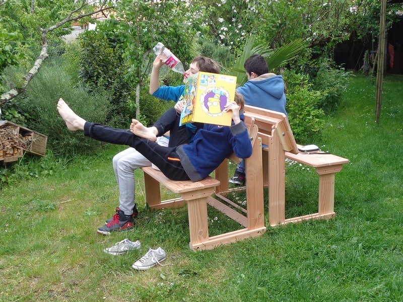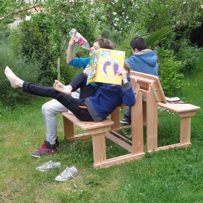 L'idée dans ce projet est donc de ne plus avoir aucun de ces inconvénients. Pour cela, on décide déjà de créer un mobilier qui peut rester dehors toute l'année sans s'abîmer et ensuite on s'arrange pour que le même meuble puisse remplir plusieurs fonctions en même temps:
