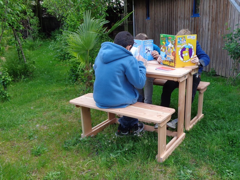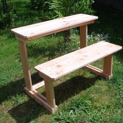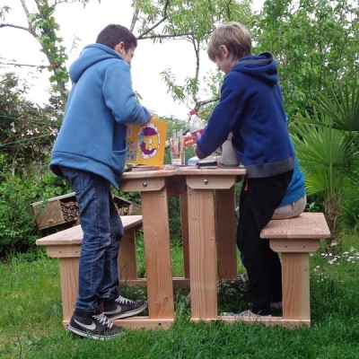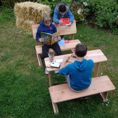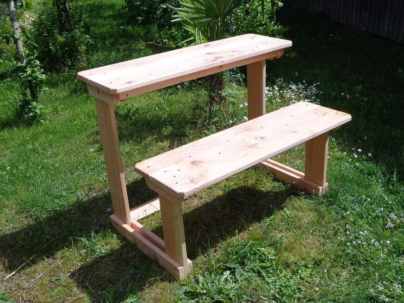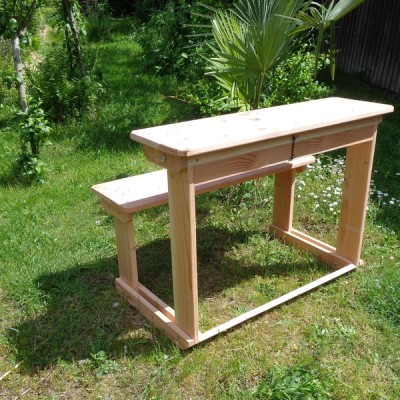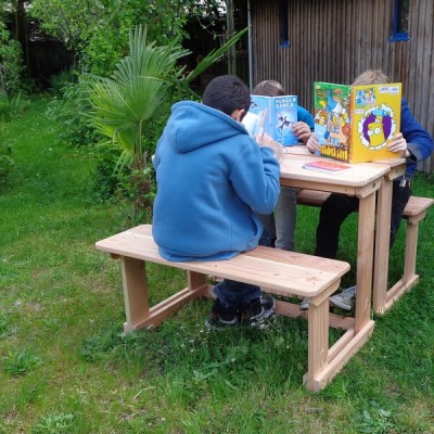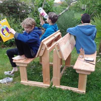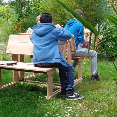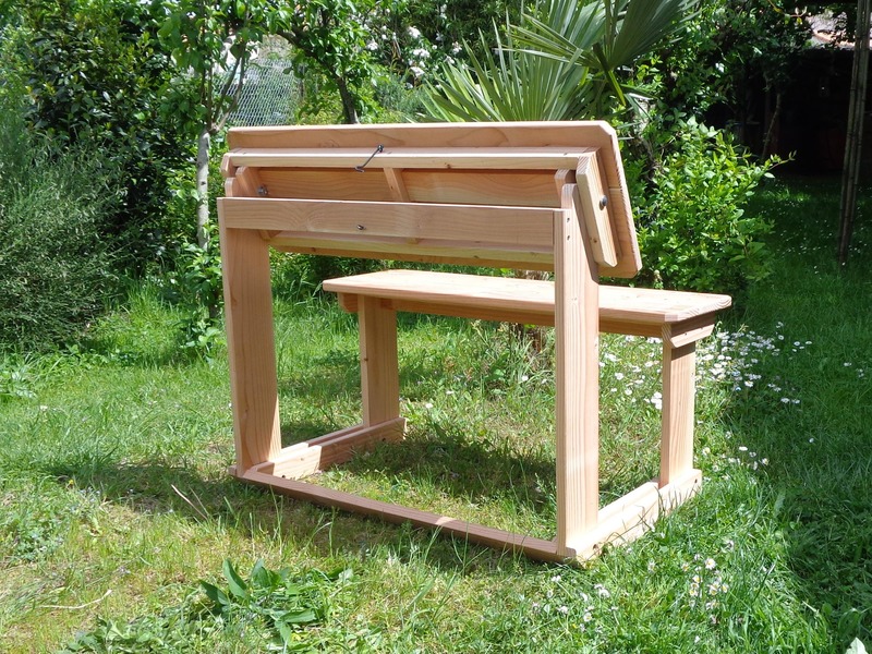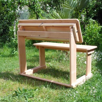 Si on les sépare en repliant les plateaux supérieurs, on obtient 2 bancs confortables. La modification se fait en quelques secondes par une personne seule et sans outil. La structure est ultra légère et le blocage du plateau se fait à l'aide d'un simple crochet.