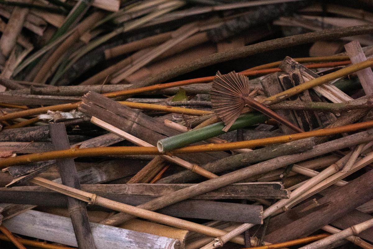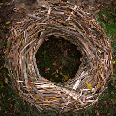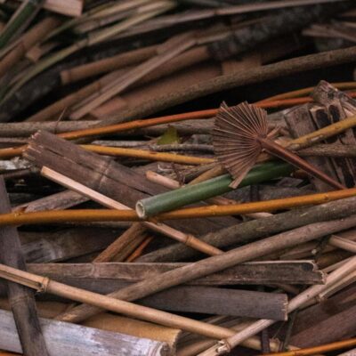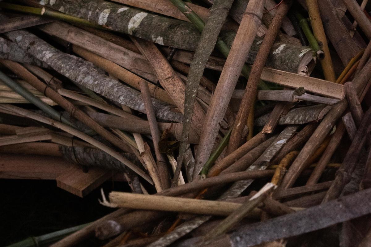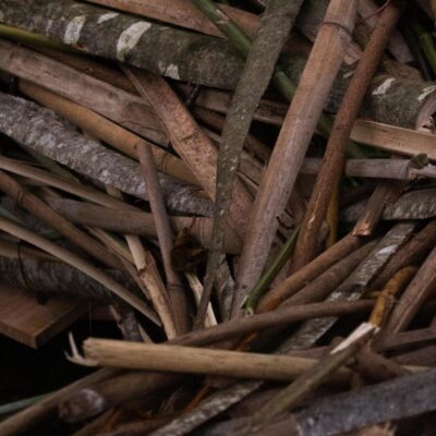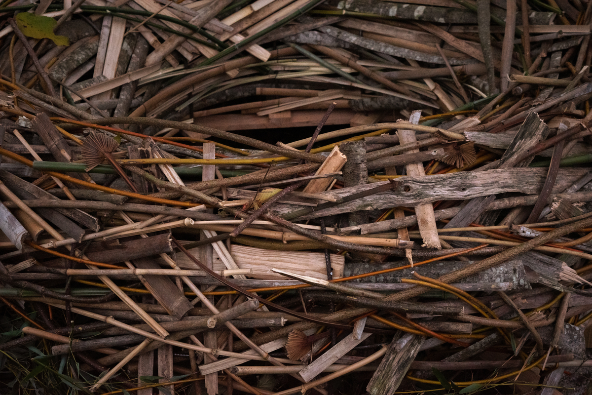 branches, lattes, tiges sur structure bois + acier