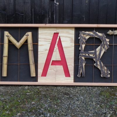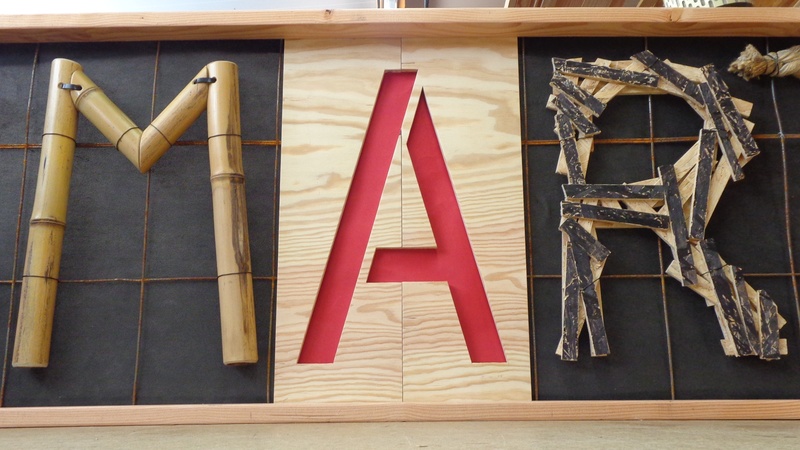 L'idée des lettres en relief, faites à la main dans plusieurs matériaux détournés pour l'occasion, permet de refléter ce qu'est le fondement de la coopérative, à savoir: la diversité des métiers, des activités et des personnes, la créativité comme le détournement, l'humour ou l'originalité et le principe artistique de la pièce unique et éphémère.