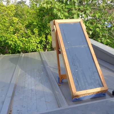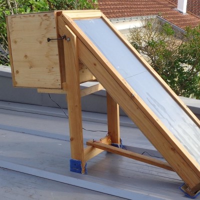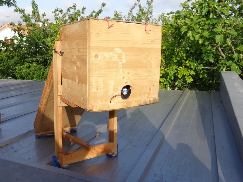 Un séchoir solaire de base est donc composé de deux éléments: le capteur qui va concentrer le rayonnement solaire afin de réchauffer l'air qui le traverse et la boite à fruits dans laquelle va circuler cet air chaud pour capter et évacuer l'humidité des aliments préalablement coupés.