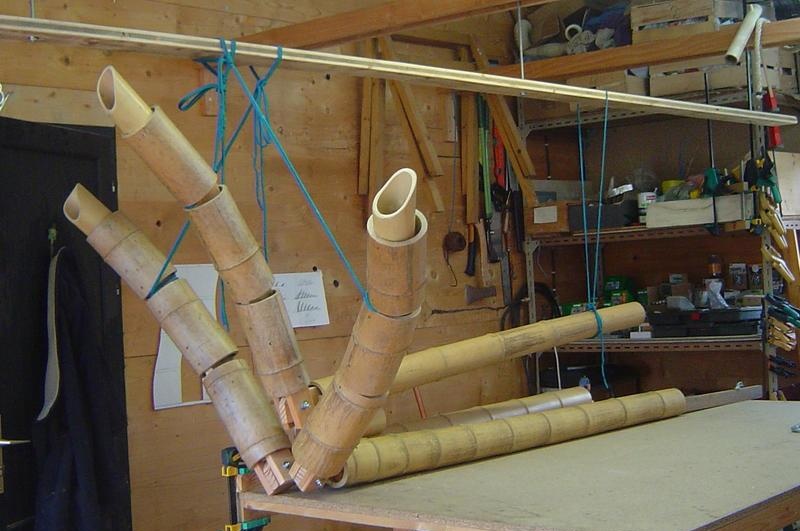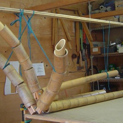 Contreplaqué enduit et peint. Bambous, bois et zinc.
